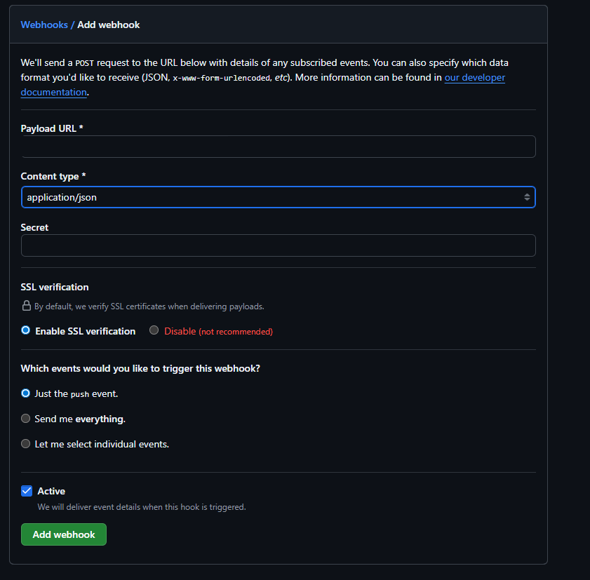 깃허브 레포지토리 > settings > webhooks > add webhook 클릭
