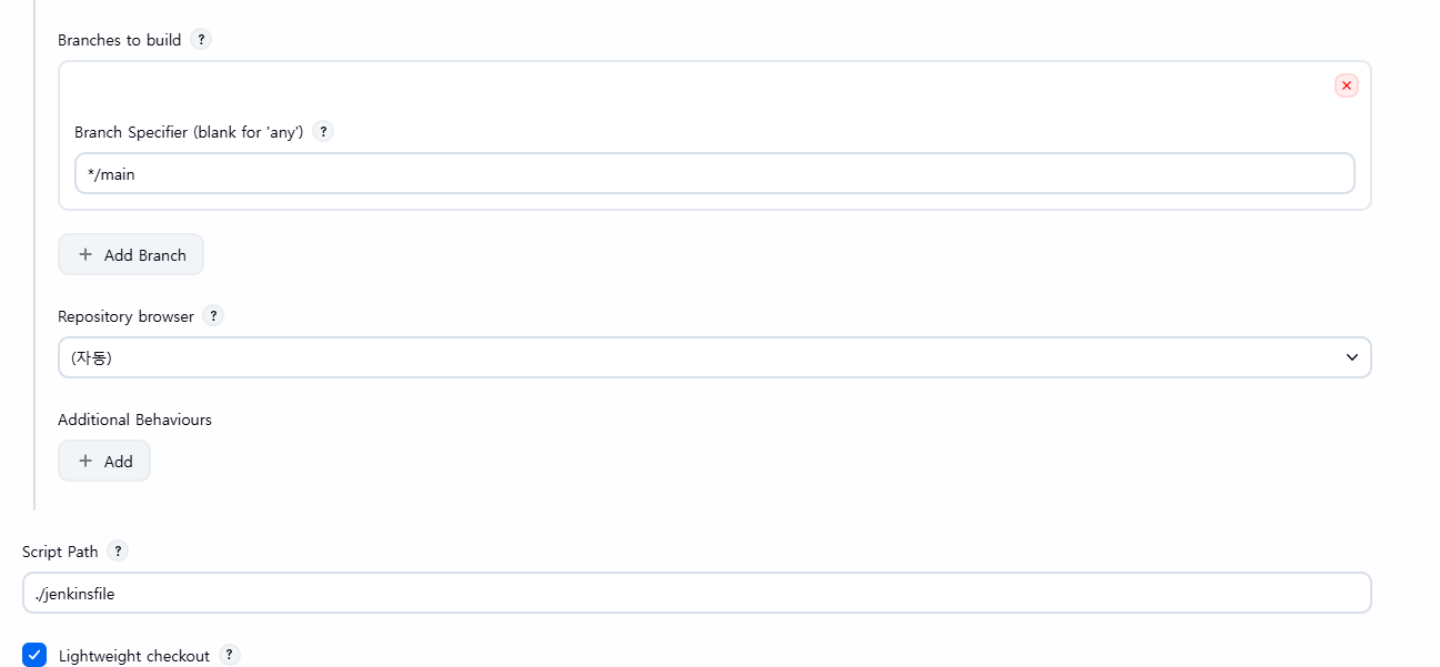 - Script Path : 루트 프로젝트에서 Jenkinsfile의 경로