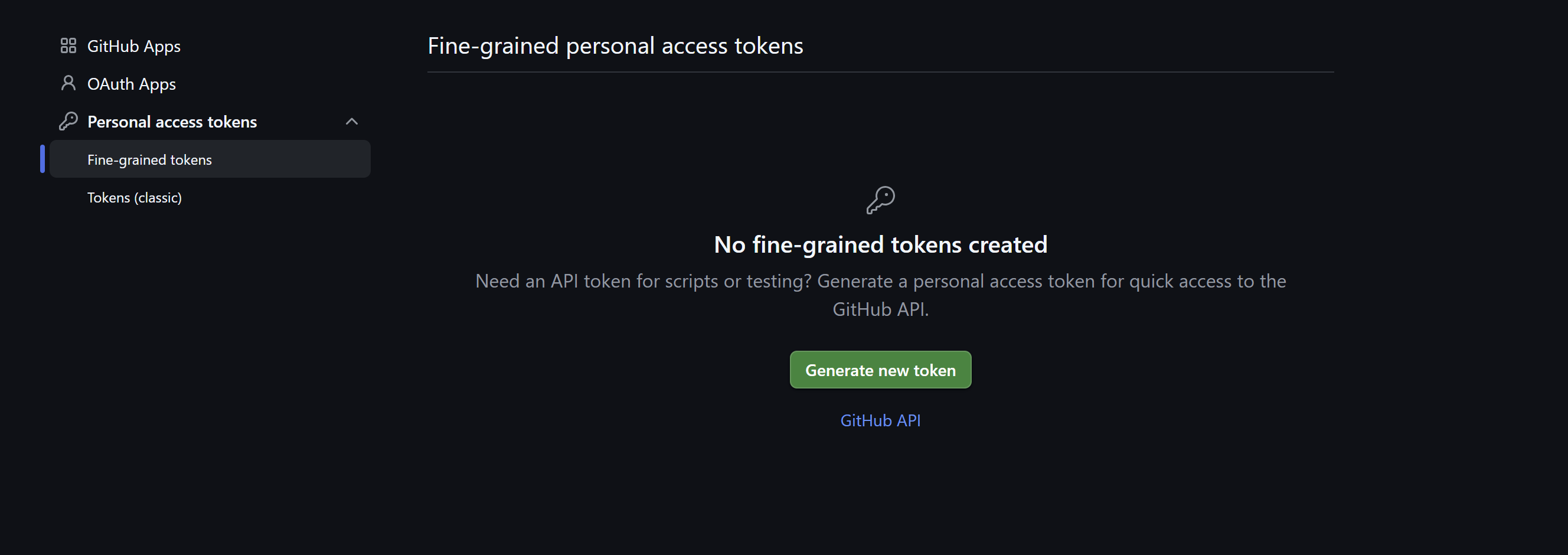 settings>Developer Settings/Personal access tokens > Fine-grained tokens 경로에 들어가서 새 토큰을 발급받아준다.